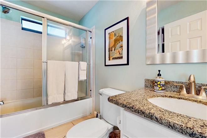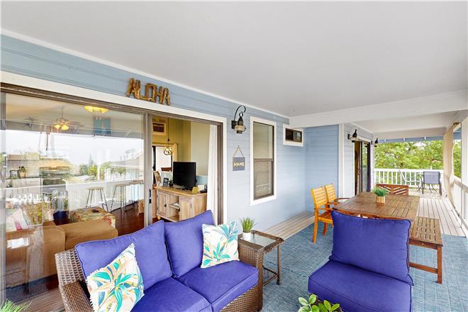Take a break from it all and spoil the whole family with an unforgettable getaway to this home away from home mere blocks from the blue waters of the ocean! With a wonderfully furnished wraparound deck boasting partial ocean views to sip favorite cocktails on and a spacious layout perfect for large families or groups of friends, there will be no delay in feeling right at home in no time. After long beach days, whipping up tasty meals will be a breeze with two kitchens, one full kitchen upstairs and a kitchenette downstairs, both offering modern appliances and plenty of prep space for any recipe. Head to the backyard and you will find your very own private paradise surrounded by tropical foliage and complete with a gas grill and seating for dining al fresco at sunset. Not to mention, the free WiFi, flatscreen TVs, and four inviting bedrooms will provide more than enough comfort and entertainment as the stars come out.