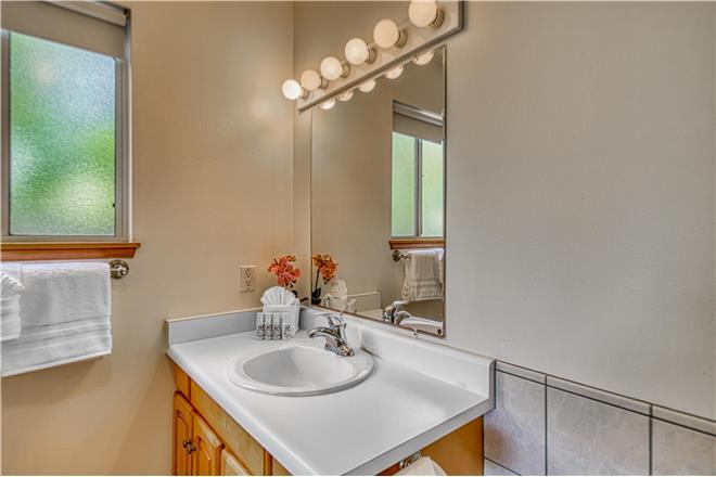 Full kitchen upstairs and a kitchenette with a fullsize refrigerator and a microwave downstairs