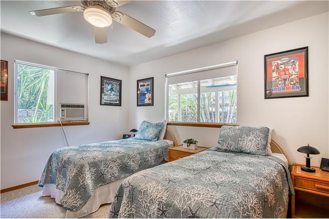 Scenically set among the palms and a few houses back from the ocean, this twolevel home was designed to accommodate a crowd. There are small comforts and conveniences everywhere you look, from the two washers and two dryers on the back patio to the six TVs positioned throughout the house.