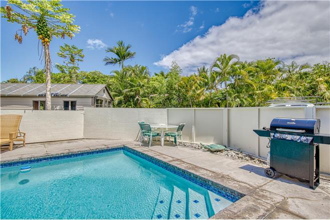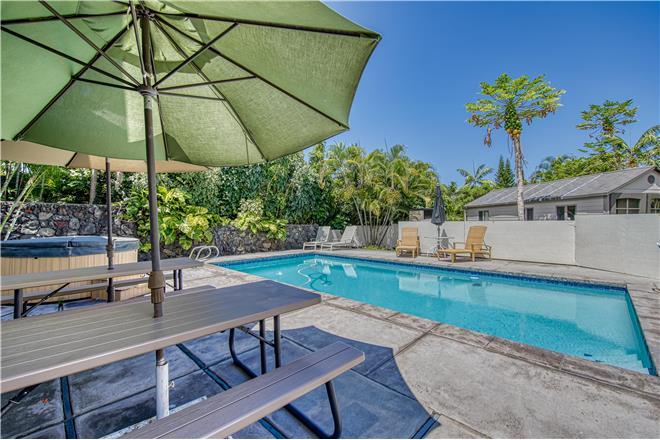 You need never leave this fourbedroom home to have a memorable vacation in KailuaKona, as youll have your very own outdoor pool, a private hot tub, and a picnic and grilling area on the terrace to enjoy in the Big Island sunshine. Yet this property also boasts an ideal location for beachgoing and exploring, with Magic Sands Beach Park less than half a mile up the road.