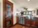 The fully equipped kitchen features sleek quartz countertops, stainless steel appliances, and solid wood cabinetry, making meal preparation a breeze. Adjacent to the kitchen, the dining area provides an inviting space to gather for meals or plan the days activities.