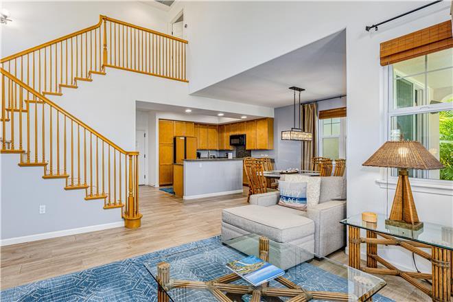 Outdoor space at home includes a shady lanai, perfect for morning coffee, and a private balcony, surrounded by foliage, perfect for a sundowner. Inside, youll find soaring ceilings, stylish island decor, and an open floor plan, ideal for gathering as a group. The chef will love the full, wellequipped kitchen, and everyone can eat together at the large dining table. When its time to hit the beach, grab the provided boogie board, two beach coolers, and beach chairs and make a day of it on the sand. When you return, relax in the central airconditioning or open the windows to enjoy those trade winds. Head out for a night on the town or stream the latest release before bed and drift off to sleep dreaming of your first and next perfect vacation day.