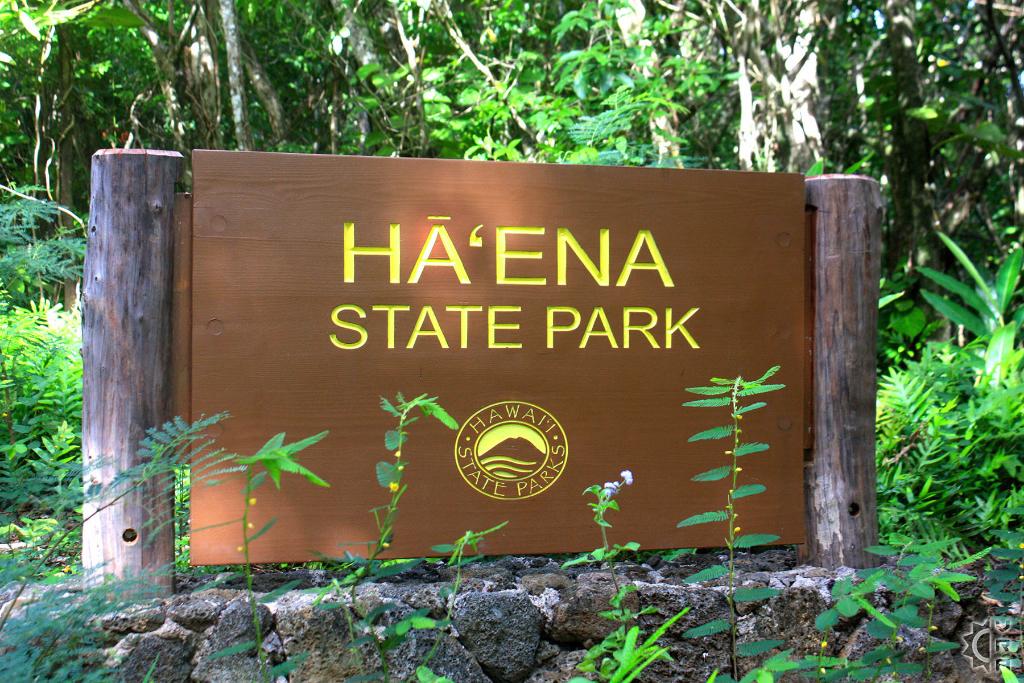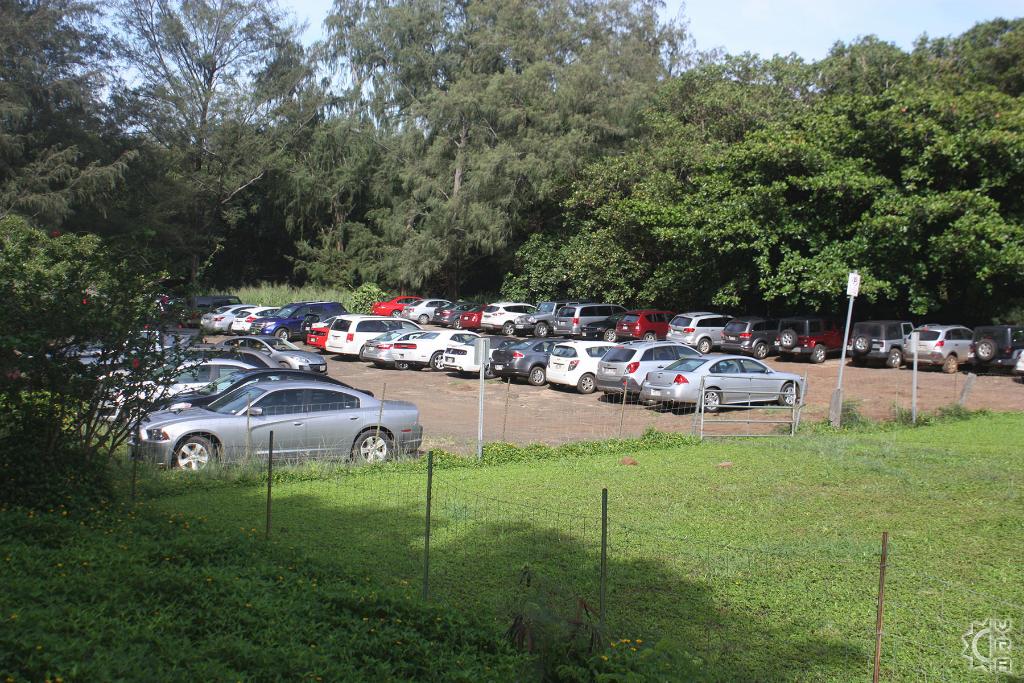 Drive Kuhio Highway/ HI-route 56 West out of Hanalei town for 8 miles until you past the neighborhood with many "Tunnels" related hand painted signs. Go slowly until you come to a stream crossing that has you driving through the water. Just past the crossing there is small parking area on the right, continue past this section. The road will wind along the coast then inland again, as you cross a small stream bridge you will see "Ha'ena State Park" sign on the right. Parking over flow starts on the right, proceed mile further to the primary parking area, and patiently look for parking.