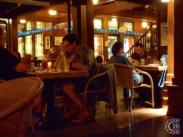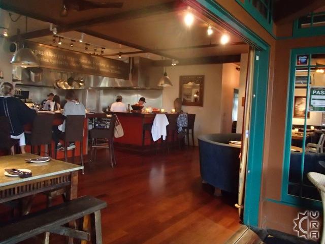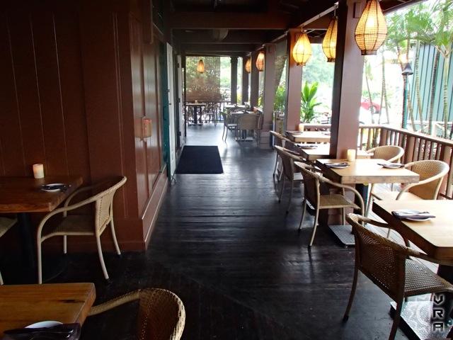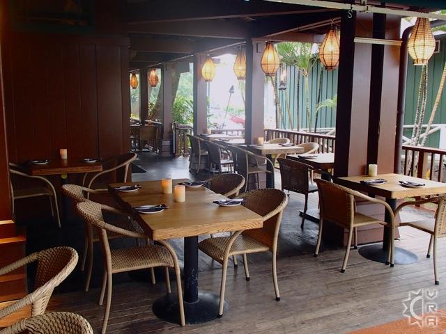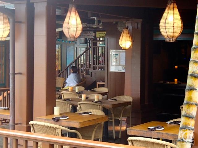 Environment/Dcor: stylish dcor with indoor circular booths and bar seating, and outside covered seating on the lanai. Very date centric, chic island dcor