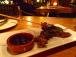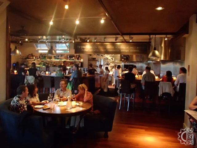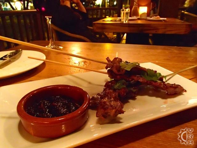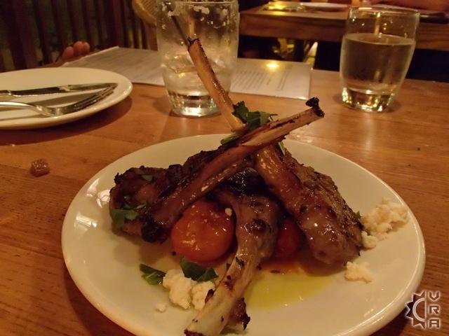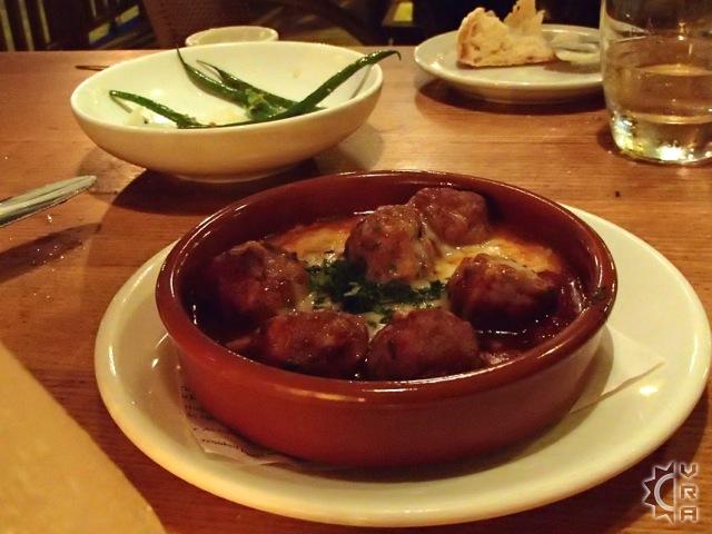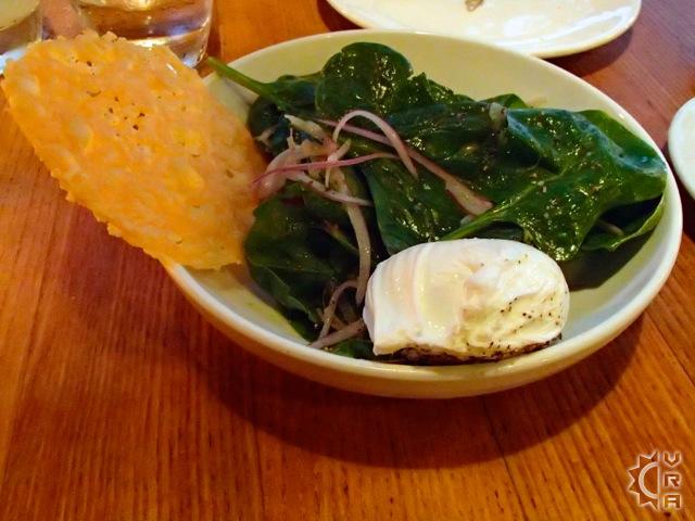 Olbendingas- Spanish pork and beef meatballs in a smokey tomato sauce, Banderillas grilled flank steak skewers with honey and chipotle chili oil were both delicious, as were the lamb riblettes in roasted cherry tomato and curry oil. For greens try the Spinach Salad w/soft egg on parmesan flat cake, a surprising delicious salad. The mocha fudge cake was decadence best shared with a loved one, or close friend.