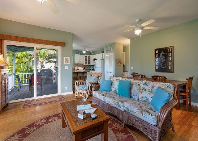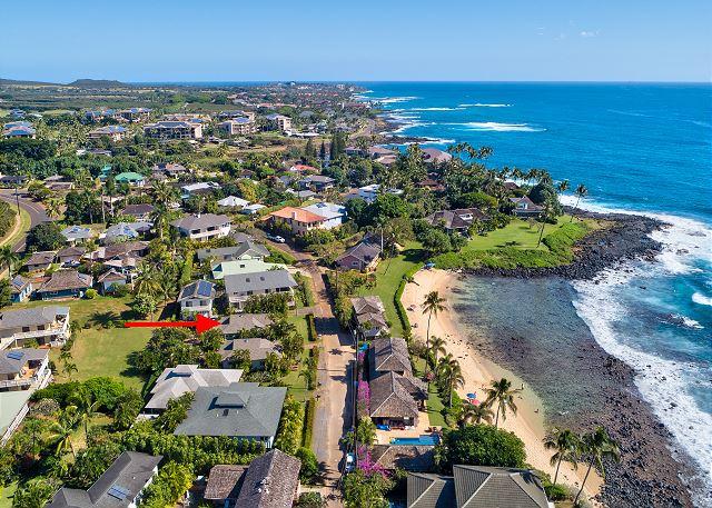 Perfectly located and close to all of Poipu's best attractions; 5 min drive west to Spouting Horn and 5 min drive east to Old Koloa Town. Less than 5 minute walk to one of the best snorkeling beaches on the island and a 5 minute walk to The Shops at Kukui'ula.