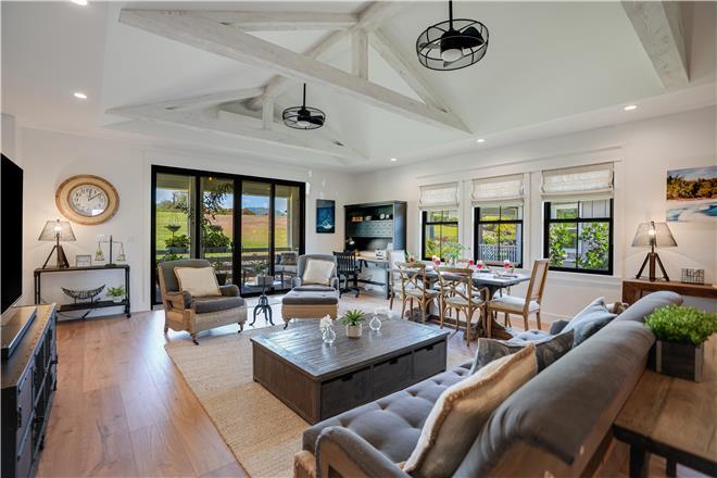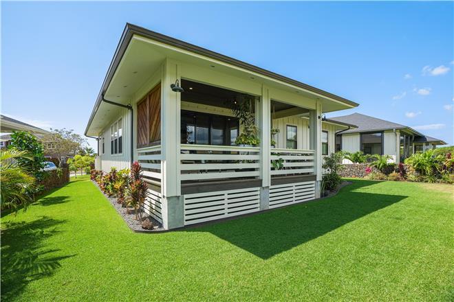 Welcome home to your tranquil Hawaiian getaway! This newlyconstructed upscale home is nestled in a quiet neighborhood away from the tourist noise, yet only a short drive to the sunny Poipu beaches and attractions. This wellkept, modern farmhousestyle home will stun you with its flawless aesthetic and attention to detail. The spacious open layout will allow you plenty of family time, even if you want to make use of the gorgeous custom kitchen. The wellequipped kitchen invites you to whip up your specialty utilizing the stainless steel appliances, gas range, and the oversized center island complete with a large concrete sink and breakfast bar seating for an authentic homestyle stay. When youre ready to indulge in that tropical heatwave, the doors off the living area open right up to a lounge area with expansive greenery views on the covered lanai. Or, for a more quaint feel, sip a cup of coffee on one of the front porchs rocking chairs. When its time to cool down, indulge in the homes AC, which is exceptional in all zones of the house. After a full day of exploration, youll be grateful to come back home and unwind in the primary bedrooms spalike bathroom with its elegant clawfoot bathtub, standalone rain shower, and dual vanities. If your group includes children, theyre sure to delight in the treehouse bunk beds in the second bedroom.