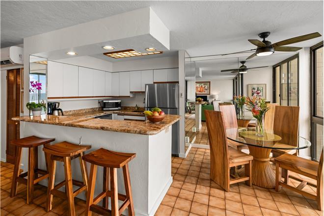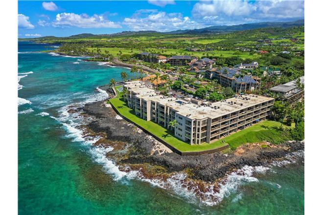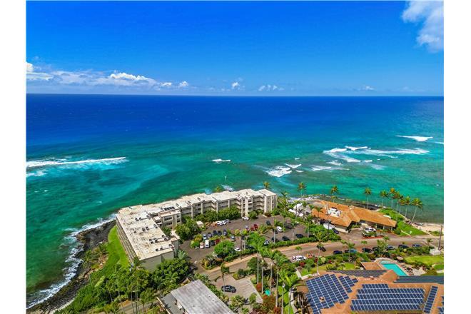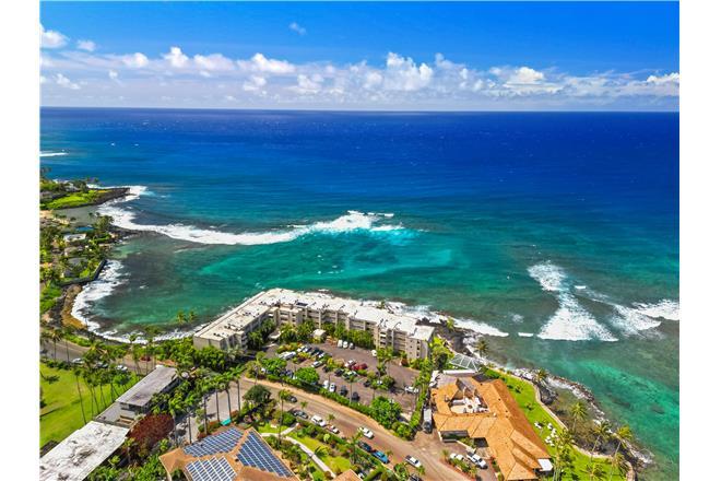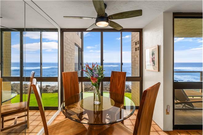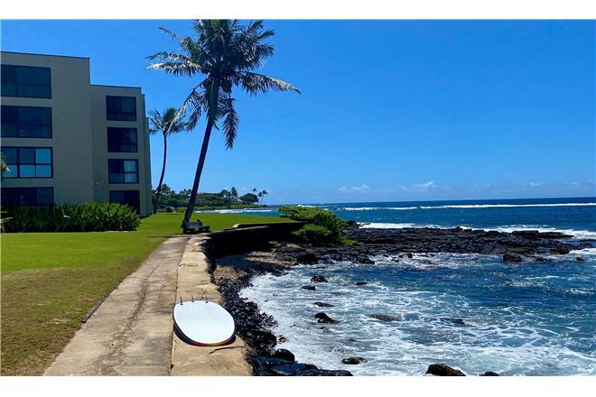 Tax ID: #TA-198-131-0976-01Experience the ultimate Hawaiian getaway at Kuhio Shores 215! This oceanfront condo offers breathtaking water views from the private lanai, perfect for enjoying stunning sunsets with a cold drink in hand. Stay cool with the split system A/C in the living room, a rare luxury for oceanfront properties in Hawaii. The living room features floor-to-ceiling windows with magnificent ocean views, a wicker couch, and three armchairs for relaxation. The fully-equipped kitchen boasts full-size appliances, granite counters, and extras like a toaster, blender, and coffee maker. Enjoy meals at the four-person glass-top table with the Pacific Ocean as your backdrop.