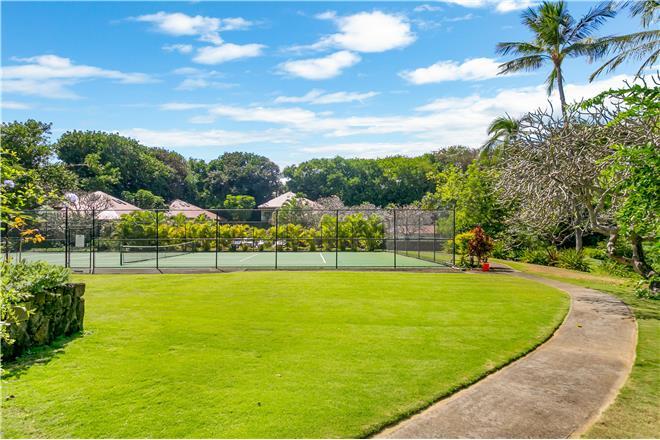 Resort amenities include a swimming pool, sauna, tennis courts, meeting room/clubhouse, ping pong tables, and a community BBQ area.