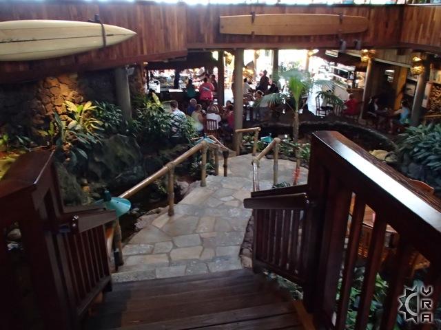 The staff is very local, as is the entertainment, and the environment is old Hawaii with hospitality that matches the dcor. The restaurant has a more casual downstairs "Barefoot Bar" and a more formal upstairs for dinners only. The central linking stairwell winds along a waterfall and Koi pond that make you feel like you are in a dream of your Hawaiian vacation.