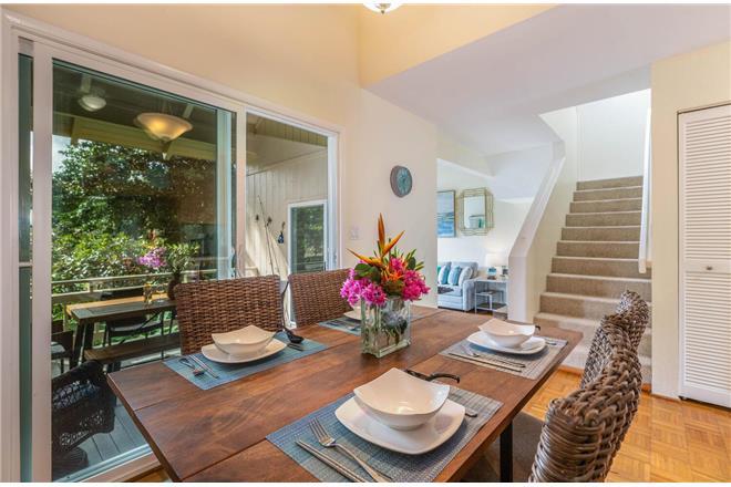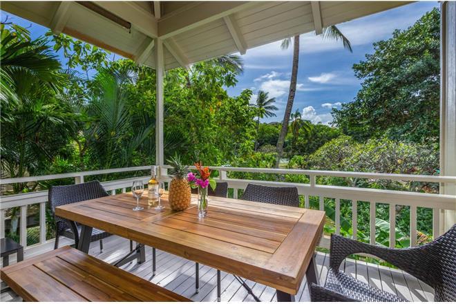 Enjoy the lanai for meals, lounging, and a peaceful place to relax while the tropical trees slowly sway in the breeze.