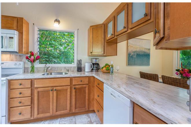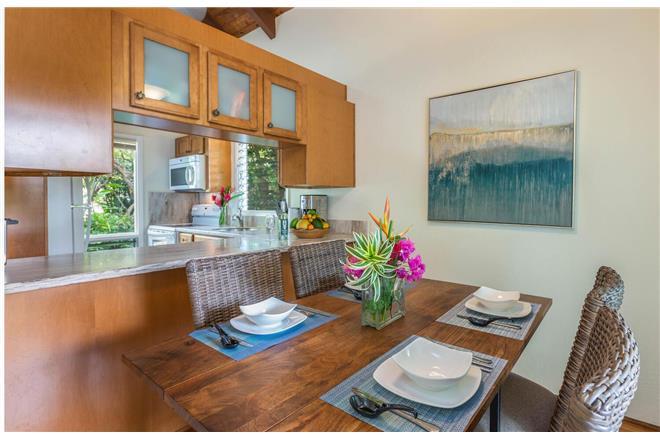 AC was recently added to aid cooling when the tradewinds die down - this property will keep you cool and comfortable year-round! Most of the rooms have dramatic vaulted ceilings lending to aPolynesian atmosphere.
