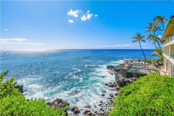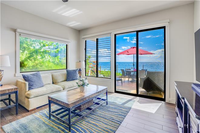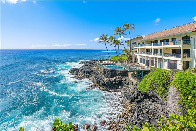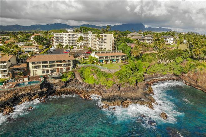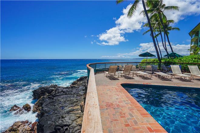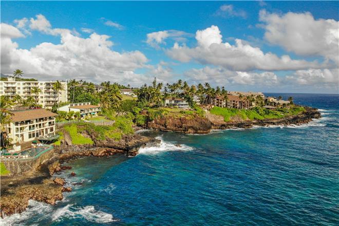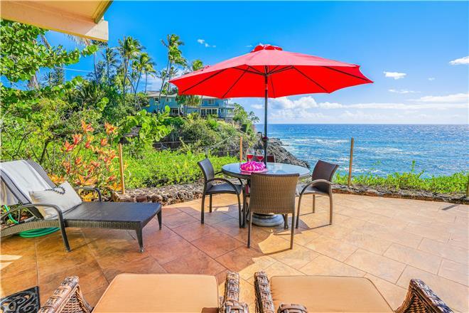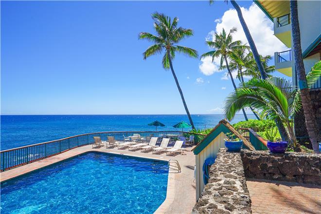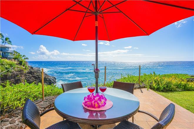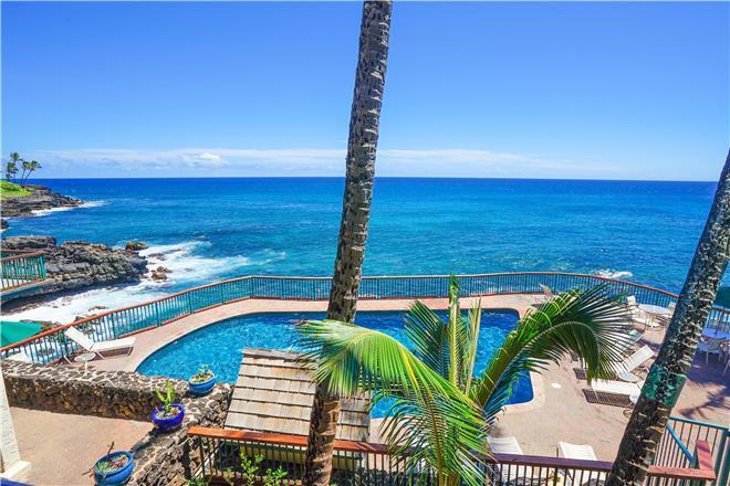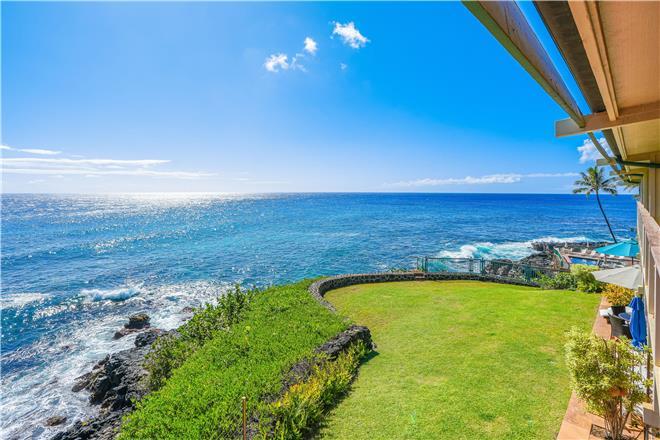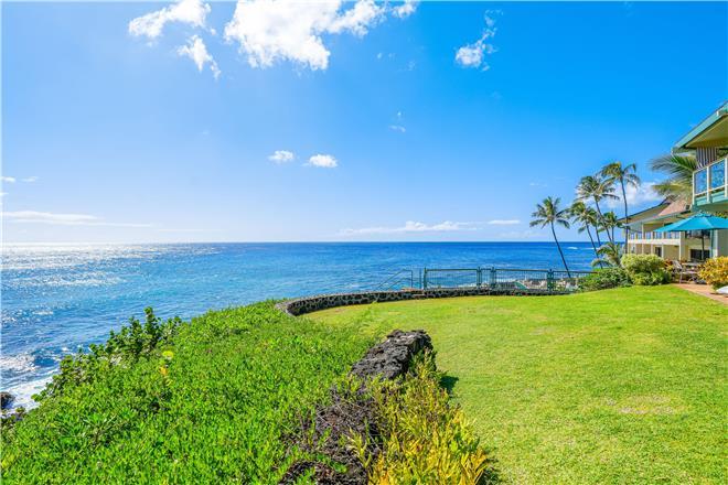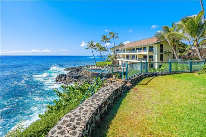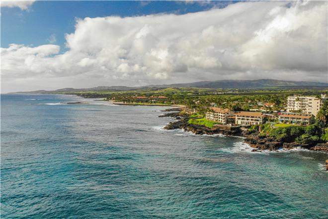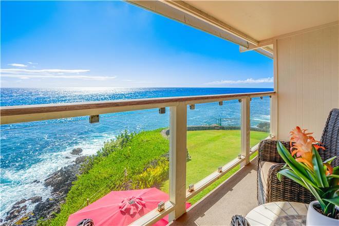 Dont just vacation in Hawaii, live in total luxury at Poipu Shores 101C with central air conditioning and porcelain wood plank tile throughout! This beautiful townhome is located in the end with water views on two sides. There are turtles floating below every day. Experience milliondollar views from the extralarge lanai downstairs and the main bedroom lanai upstairs, where you can enjoy fabulous sunsets and watch dolphins and sea turtles play.