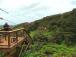 After the short drive past a locked gated access, you reach the mountain base station where you meet your zip guides and get harnessed and helmeted in a small shelter with your first look at the amazing view. As your group walks uphill toward the first launch and you see the wooden walkway with a cable stretched overhead reaching out to what looks like a distant landing strip, it will dawn on you for a moment that you are about to do something extreme. Now you are in it, and a strange camaraderie takes hold amongst your tour-mates.