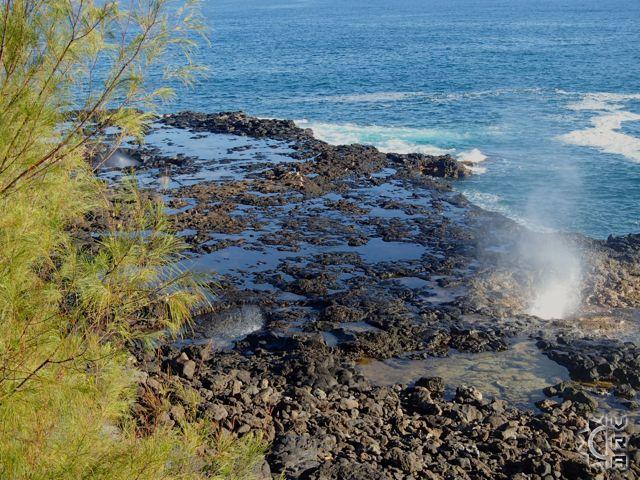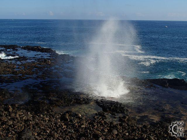 A "Blow hole" is one of the scenic wonders that occur in the Hawaiian Islands where the cooled lava rock meets the ocean. The most famous of these is on Kauai and called the "Spouting Horn" and is located in the southern town of Poipu. Easily reached by paved roadway and ADA accessible with paved level walkways. Don't be discouraged by the many tourists frequenting this spot, as turnover is quick and the adjacent 4.4 acre park has room to picnic or pause from your day of exploring Kauai.
