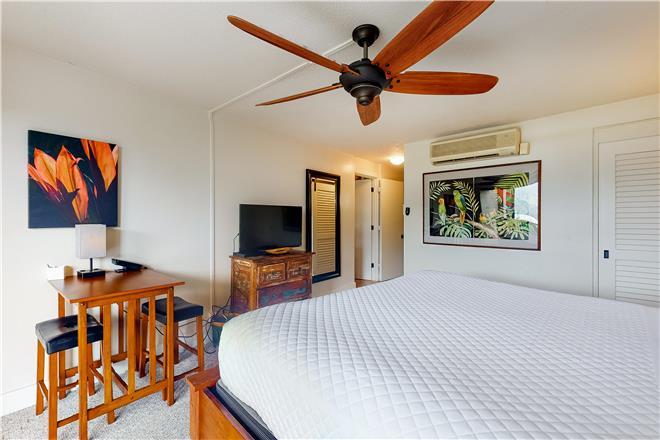 4204 airconditioning, king bed, full bathroom with tub and shower, TV, mini fridge, coffee maker, private entrance and lanai