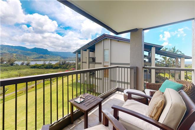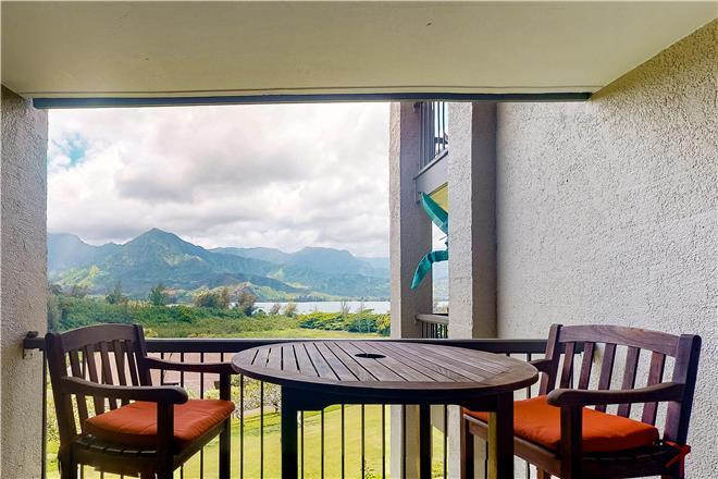 Hanalei Bay Resort 42045 is an airconditioned condo, featuring two bedrooms, two bathrooms, kitchen, living and dining room areas and private lanais. Each bedroom features a comfortable kingsized bed and an en suite bathroom. The wellappointed kitchen makes it convenient to enjoy a homecooked meal. There is an inhome washerdryer for your convenience. This unit offers view of sailboats anchored in Hanalei Bay during the summer and the beautiful waterfalls cascading down Namolokama during the rainy season. Perfect setting for a relaxing vacation while having access to all of the amenities that Hanalei Bay Resort has to offer.