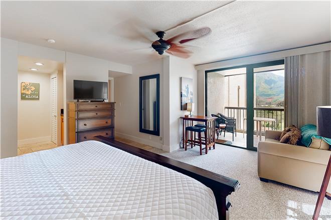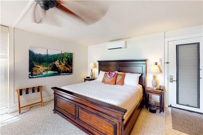 4206 airconditioning, king bed, full bathroom with tub and shower, TV, mini fridge, coffee maker, private entrance and lanai
