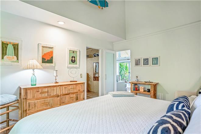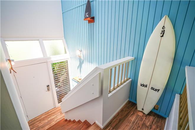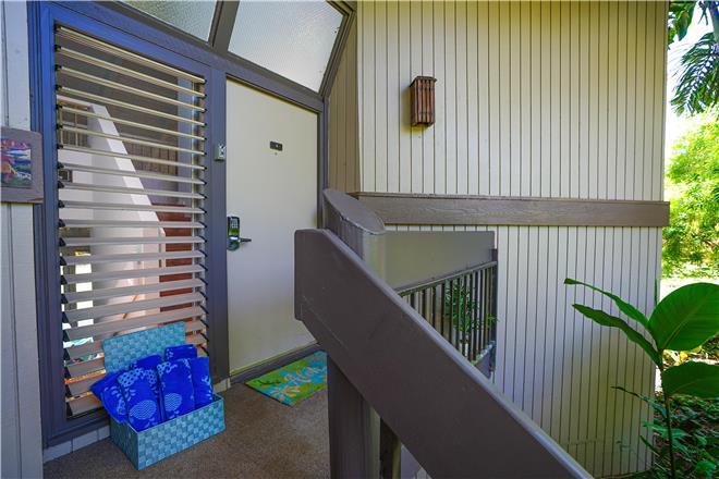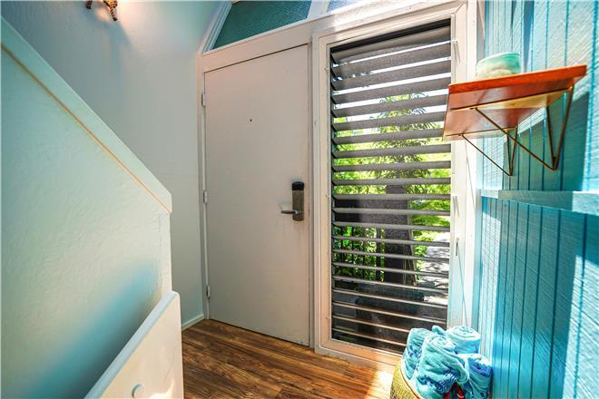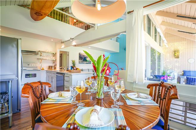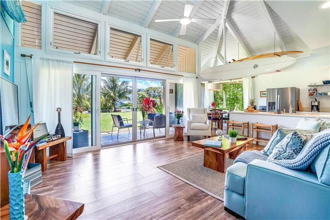 As you step inside, youll be greeted by lofty vaulted ceilings, a breezy atmosphere, and hues of blue and white that bring to mind the colors of the shore. Down half a flight of stairs is the main living space, where you can open the sliding lanai doors to let in the ocean breeze and the scent of flowers. There are thoughtful updates throughout, including new furniture, new electronics, a Bose speaker, and highspeed WiFi.