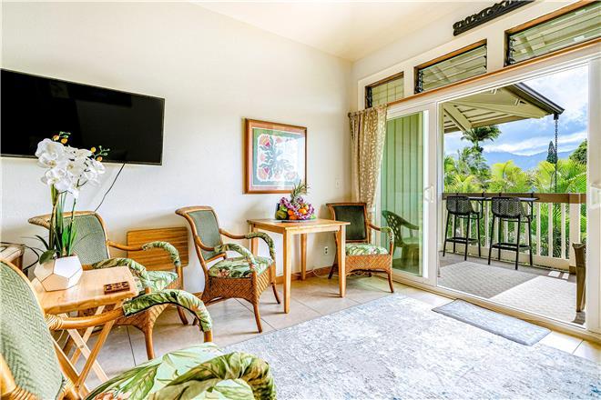 Picture-perfect views abound at this tropical retreat! This full duplex boasts stunning views of lush foliage and the surrounding Hanalei Mountains from two, private patio-balconies - also showcasing magnificent sunset vistas. Conveniently located within walking distance of the Princeville village, this breezy combo rental is perfect for a laid-back getaway with family and friends.