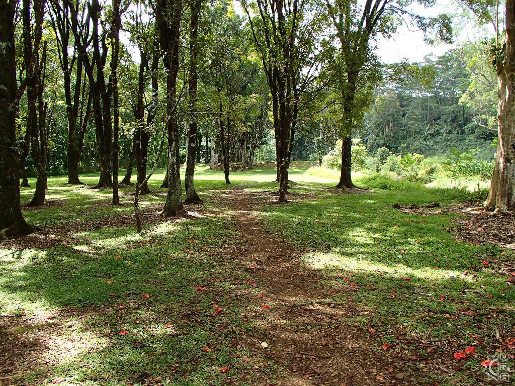At the top of the Opekaa Falls Road, the road ends in a great spot for a forest walk or freshwater swim. A little known state arboretum with picnic shelters, and stands of tall trees surrounding green meadows. There is even a view toward Mount Waialeale the wettest spot on earth, and the lush green rainforests it supports. This location is more of a stroll through a park then a hike, yet it has the ability to be walked repeatedly for exercise or provide a restful place for your non-exercising family members to relax streamside in the shade.