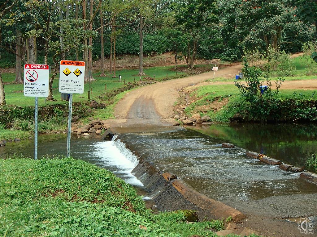 Warnings!: Do not drive or walk through the stream crossing when water level is high or stream is running with brown water. Swimming should only be attempted when water is clear of flooding.