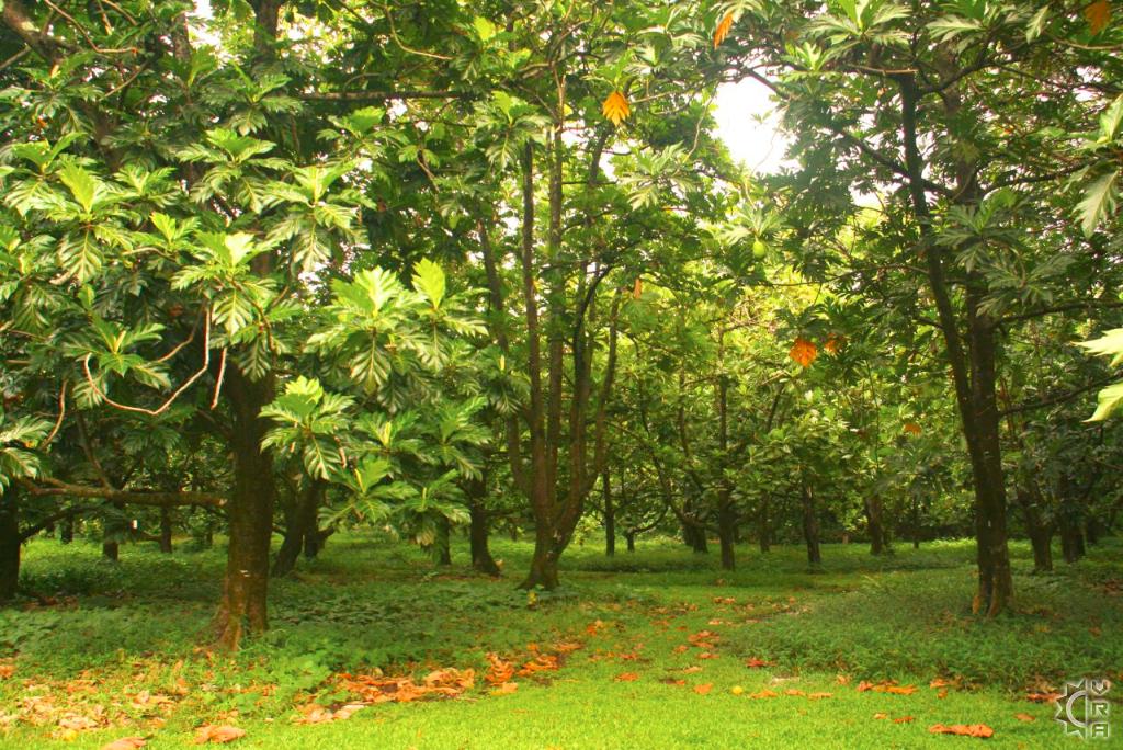 A section of the garden just left of the entry house is the world's largest collection of breadfruit cultivars. This genetic storehouse of Polynesia's staple food crop has 120 varieties present, making it a very significant grove for preserving this culturally significant plant that followed the Polynesians wherever they established landfall.