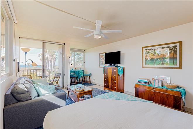 This home's location adds an extra dose of privacy and the recently updated interior is ready to let you unwind between outings. The private, ocean-view lanai is furnished for breezy outdoor living and dining. The efficiency-style kitchen is well-appointed to handle everything from on-the-go snacking or full meal prep. A Roku smart TV sets the stage for casual in-home entertainment. Let the cooling tradewinds circulate throughout the space or use the newly installed air-conditioner to beat the tropical heat. Additional perks include free WiFi and shared laundry facilities located on-site.