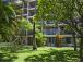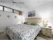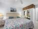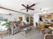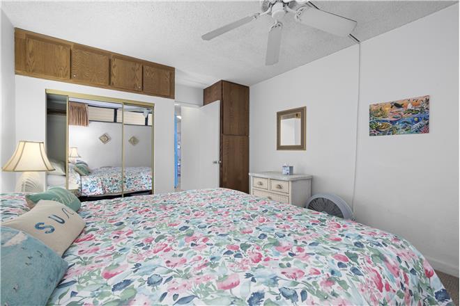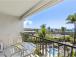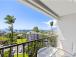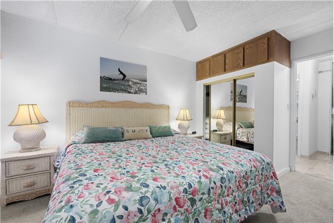 This one-bedroom garden-view condo has beautiful ocean views in the distance. This unit sleeps up to four people with a king bed in the bedroom. The furnishings in this unit are a mixture of rattan with tropical accents. The living room has a mirrored wall creating an open space for relaxing.