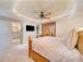 Master Bedroom: Queen bed, garden view windows, ceiling fan, TV, and private workspace.
