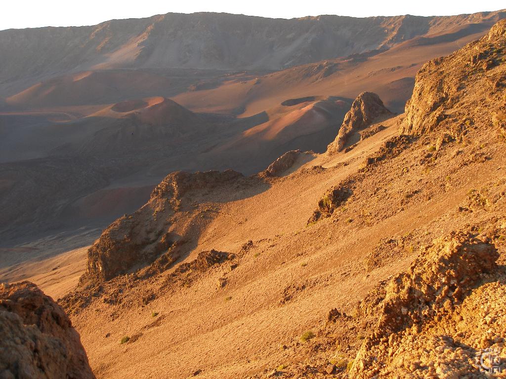 As volcanic mountains rising above the sea, the Hawaiian Islands possess mountain peaks far removed from the warmth and comfort of the tropical beach version of paradise. It is said that every 1000 feet of elevation that you gain in altitude, the temperature drops 3 to 5 degrees Fahrenheit. At 10,023 feet tall at its summit, we actually get frost and snow conditions at the summit during the winter. If you come unprepared for this, you will definitely regret not doing so. Even in the summer months, the summit predawn temperature can be in the 40 F. degree range making for shock to those showing up in shorts and a t-shirt. Packing multiple sweatshirts, hoodies, coats, socks, shoes, and long pants are best. If you can layer up properly, you can enjoy the sunrise and even stay for the first few hours of reduced crowds in the park. It is often predictable that within 30 minutes of sunrise the masses of people that have not prepared will rapidly descend the mountain and head for warmth.