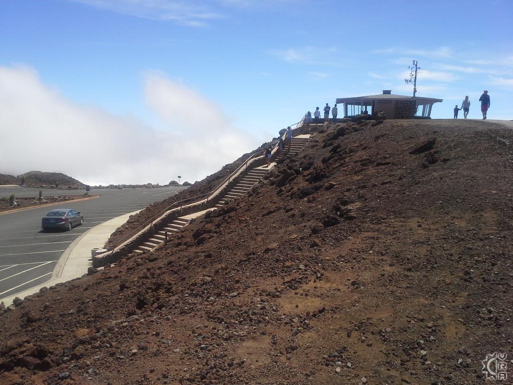20 miles up Haleakala Crater Road you will come to the National Park. A $10 admission fee is charged. The visitors' center is a few miles past the gatehouse and makes a good orientation or bathroom stop. (Visitor center closed predawn, but bathrooms open). Several miles further drive up the road above the Visitor center brings you to the summit lookouts. They both have parking areas and shelters. You will have to look at the conditions and crowds at this point to determine which viewing area is for you. For sunrise both summit vistas are recommended.
