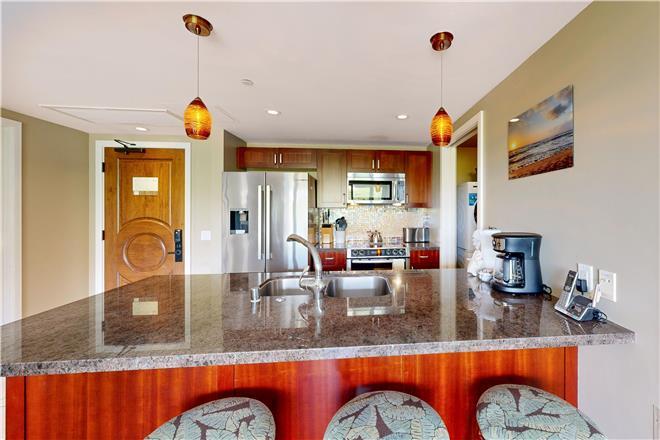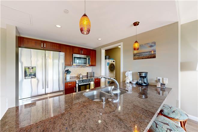 Either fire up one of the communal gas grills to BBQ up a mouthwatering dish, or stay in and make use of the gourmet kitchen's premium Bosch appliances. Featuring granite counters, stainless steel appliances, and an open layout, you'll be able to bring your culinary masterpiece to life in no time! Let the dishwasher take care of cleanup while you head out to the lanai for a nightcap while you listen to the waves crash.