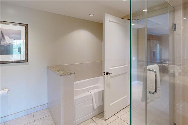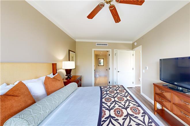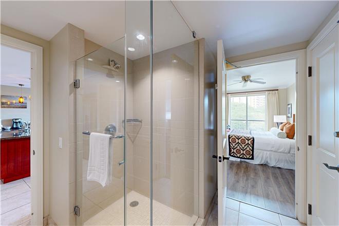 When it's time to retire, this single-bedroom, one-bathroom condo has room for up to four guests to come and relax. In the bedroom you'll be greeted by a soft king-size bed, a flatscreen HDTV, and direct access to the covered lanai. You can also open the queen-size sofabed in the living room. The bathroom is a spacious, spa-like room with both a glass-enclosed shower and a soaking bathtub.