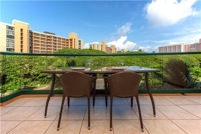 Mix a quick topical cocktail and head out on to the 140-square-foot covered lanai to take in your partial ocean views. Snap a few pictures of the breeze blowing through the swaying palm trees and then send them to your friends back home when you connect to the WiFi.