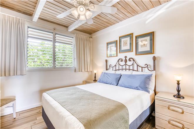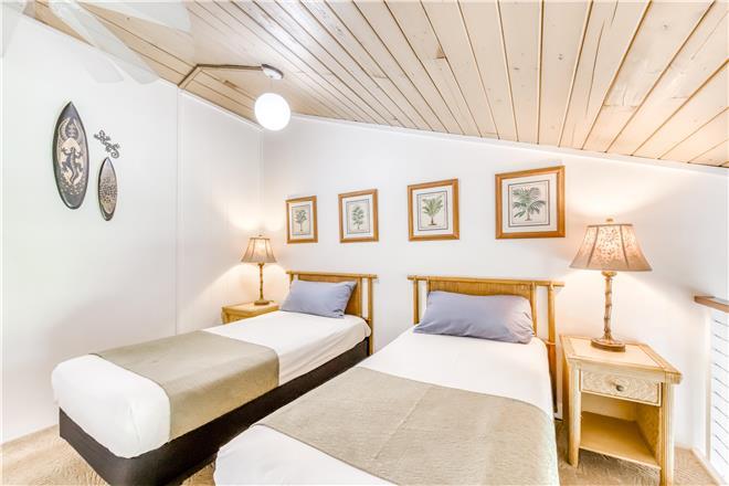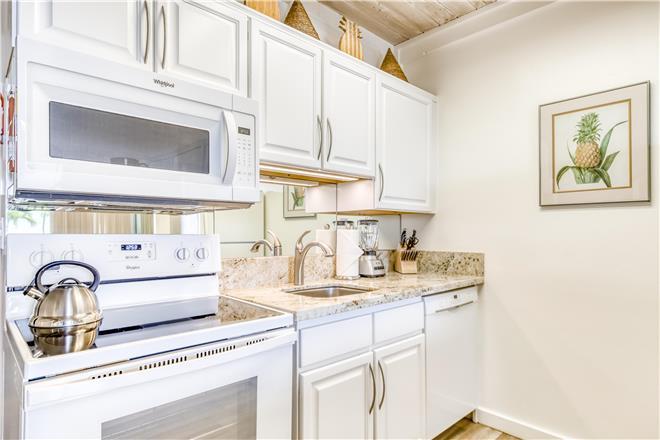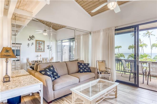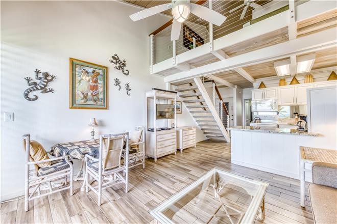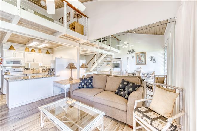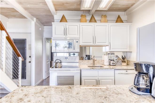 Slip into Hawaiian time at this gorgeous, twostory, familyfriendly condo. Brew up your Kona coffee and prepare all your favorite recipes in the wellequipped, full kitchen. Dine together indoors at the table for four or al fresco on your furnished balcony. Relax and watch your favorite shows or movies in the cozy living area with high ceilings, comfortable furnishings, and a cableequipped, flatscreen TV with a soundbar. Guests will also enjoy access to a shared outdoor pool and grounds perfect for quiet afternoon walks.