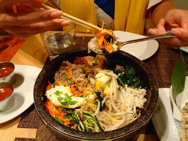 Our staff's pics: The best dish on the menu, especially for sharing, is by far the "Bibimbap", not an easy word to remember but just look under "rice and noodles" for the stone bowl full of kimchi, sunnyside egg, veggies, and rice. This filling meal enables you to create unique spoonfulls of flavor combos that melt in your mouth. For cocktails the Mai Tai is smooth and well-mixed and only $6 during happy hour. Additional hit cocktails are the "A drink for Yulie", and the "Maui Mule"