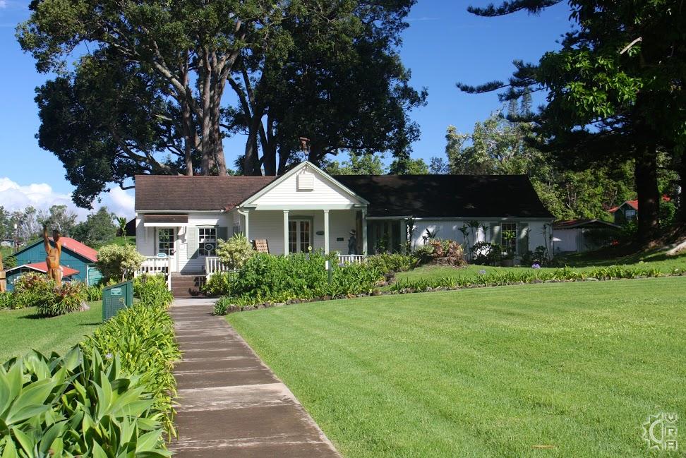 Some great art has been added to the grounds in recent years. The dynamic sculptures along the entry path to the Tasting Room were carved on the spot by local artist Tim Garcia, out of cypress trees planted back in the 1870's for the visit of Hawaii's "Merrie Monarch" King David Kalakaua. The ranch planted this ring of cypress trees for hula dancers to perform within, notice the artist tried to reflect this in the carvings. A small placard by the stairs to the Tasting Room reveals the details of this ceremonial circle, and why the trees were shaped into sculpture.