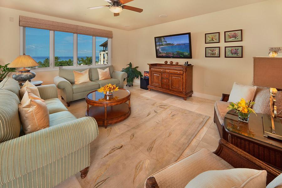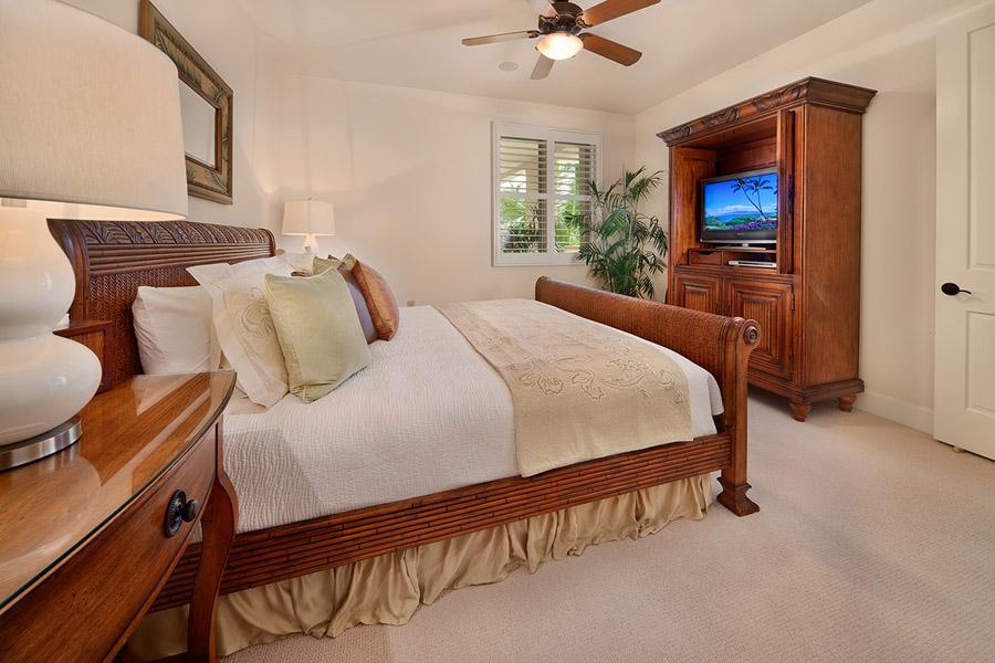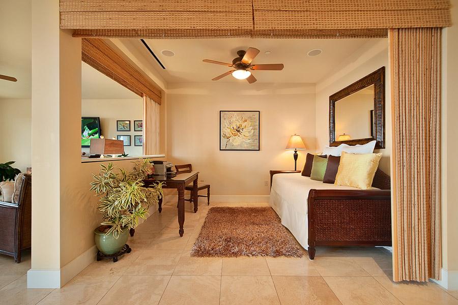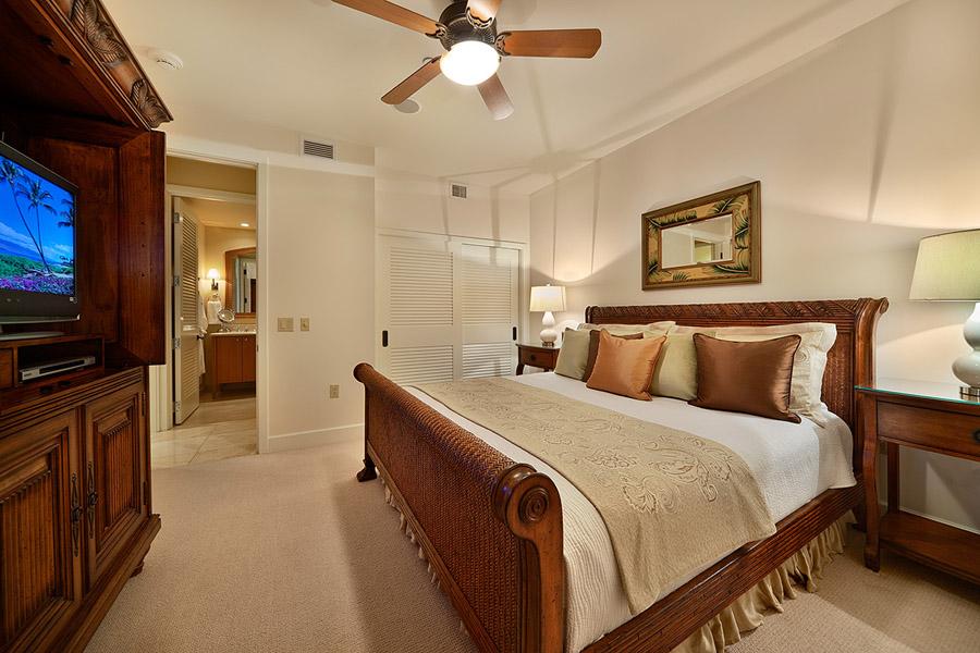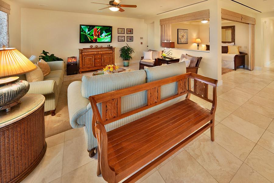 The amenities provided within The Grand Seascape K407 equal those of even the most rich hotel suites. This privately owned, uniquely decorated and professionally managed upper level corner villa is simply exceptional, within Wailea Beach Villas or anywhere else in Hawaii. Our favorite features include the Tommy Bahama sleigh bed, European import cabinets, nine foot lofty ceilings, honed marble floors, spacious floor plan, granite and hard wood finishes, luxurious Hotel Collection bath and bed linens, deep ultra-plush Serta perfect sleeper pillow-top beds, exceptional electronics with premium television channels, and the fully equipped dedicated work space. The quality of furnishings, electronics, beds, bed and bath linens, kitchen goods, household supplies, and personal service, are truly unsurpassed in comparison to other generic rental pool units.