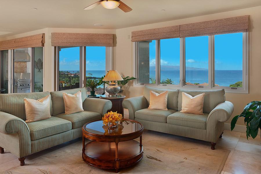 The aptly named Grand Seascape at Wailea Beach Villas, also known as K407, is a three bedroom, two bath, exceptional quality vacation residence with truly grand coastal and ocean views. With more than 2,300 square feet of stylish indoor and outdoor living space this well appointed, comfortable, and attractive villa residence is conveniently located near The Shops at Wailea.