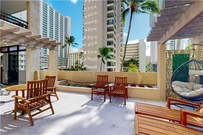 Tax ID: #PendingExperience the best of Waikiki from the comfort of this spacious 2-bedroom, 2-bathroom corner unit condo located in the heart of Honolulu, HI. Situated in a well-managed and secured building on the quieter side of Waikiki, this vacation rental offers a peaceful retreat with a plethora of amenities to enhance your stay. Relax and unwind on the large, private lanai overlooking a lush garden, complete with storage for surfboards and water toys. Inside, the condo boasts a generous floor plan, providing ample space for your group to spread out and enjoy.