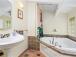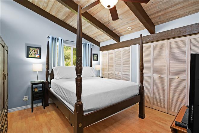 Three wellappointed bedrooms each have something unique to offer. Downstairs, the first bedroom doubles as an office with a workstation complete with highspeed internet. On the second floor, the guest bedroom adds a touch of sophistication with a fourposter bed, and the primary suite wows with a large jetted tub.