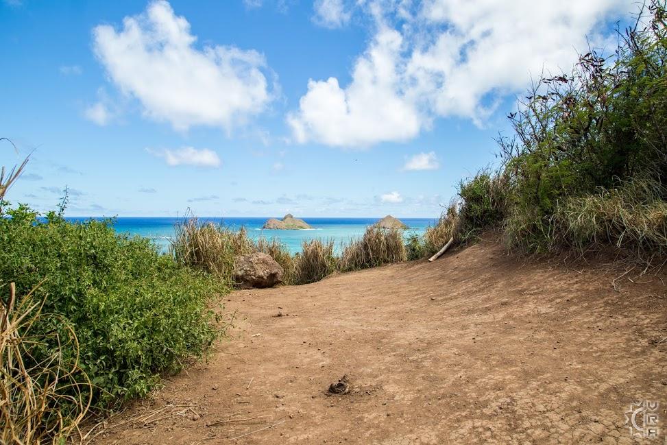 The trail begins at the end of Kaelepulu Dr. There are a limited number of parking spots there, or hikers can park along the side of Kamahele St. After parking, walk up Kaelepulu Dr and turn left to reach the start of the trailhead. There is a sign marking the starting point, and the first several yards of the trail lead up along a residential property fence line. Once you reach the top of this section, you will step out to be greeted with the first view overlooking Lanikai and the Mokulua Islands. The trail is open from here on out, offering views to both sides of the ridge line.